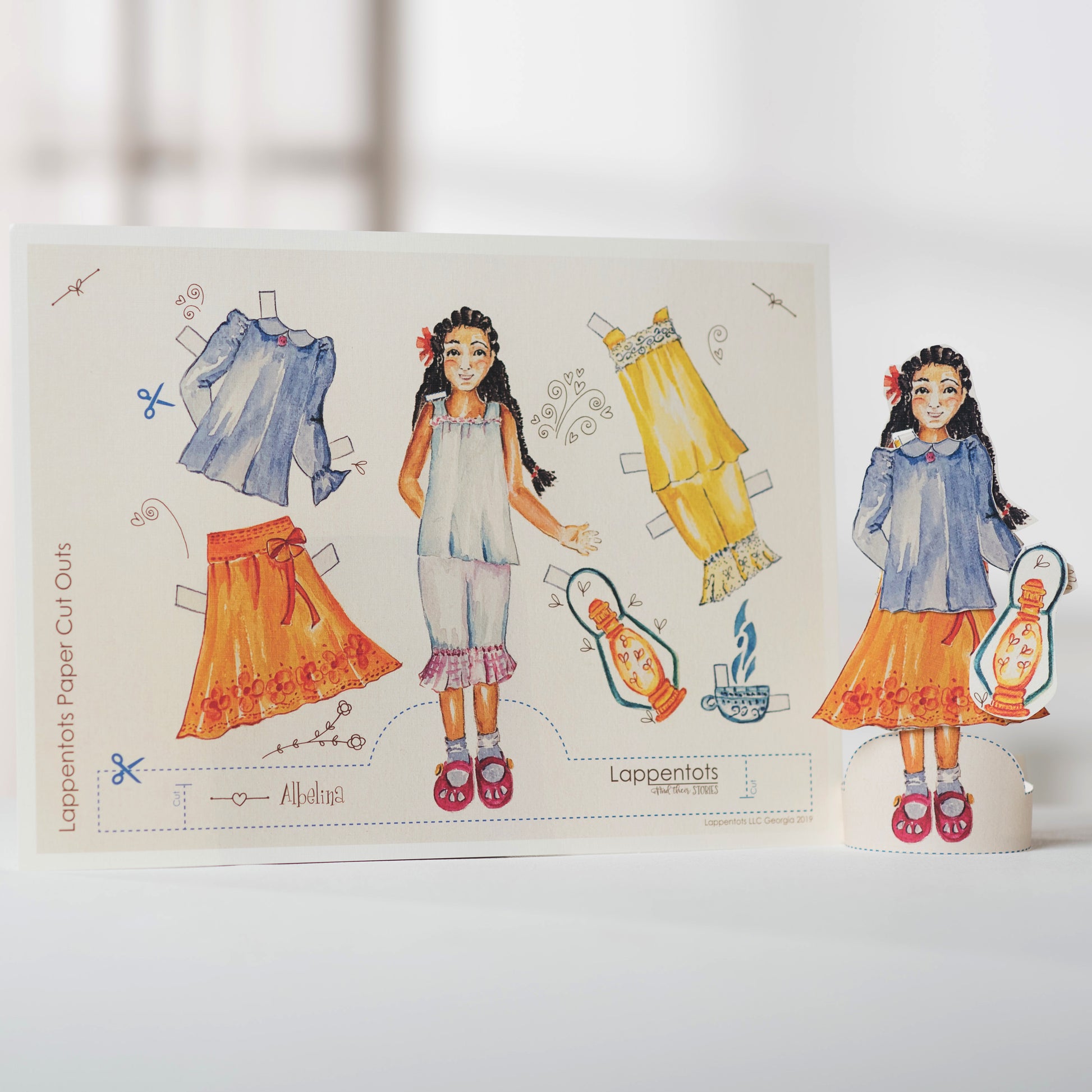 Lappentot paper cut-outs and a dose of imagination are perfect for an afternoon of play. Albelina Atlanté comes with a second set of bloomers, a skirt, a blouse, a lantern with fire flies and cup of lavender tea. But Albelina Atlanté is a character with wonderful voice and a generous heart, read about her on the story page and find out who she really is! And look out for her friends Melissa and Sebastian