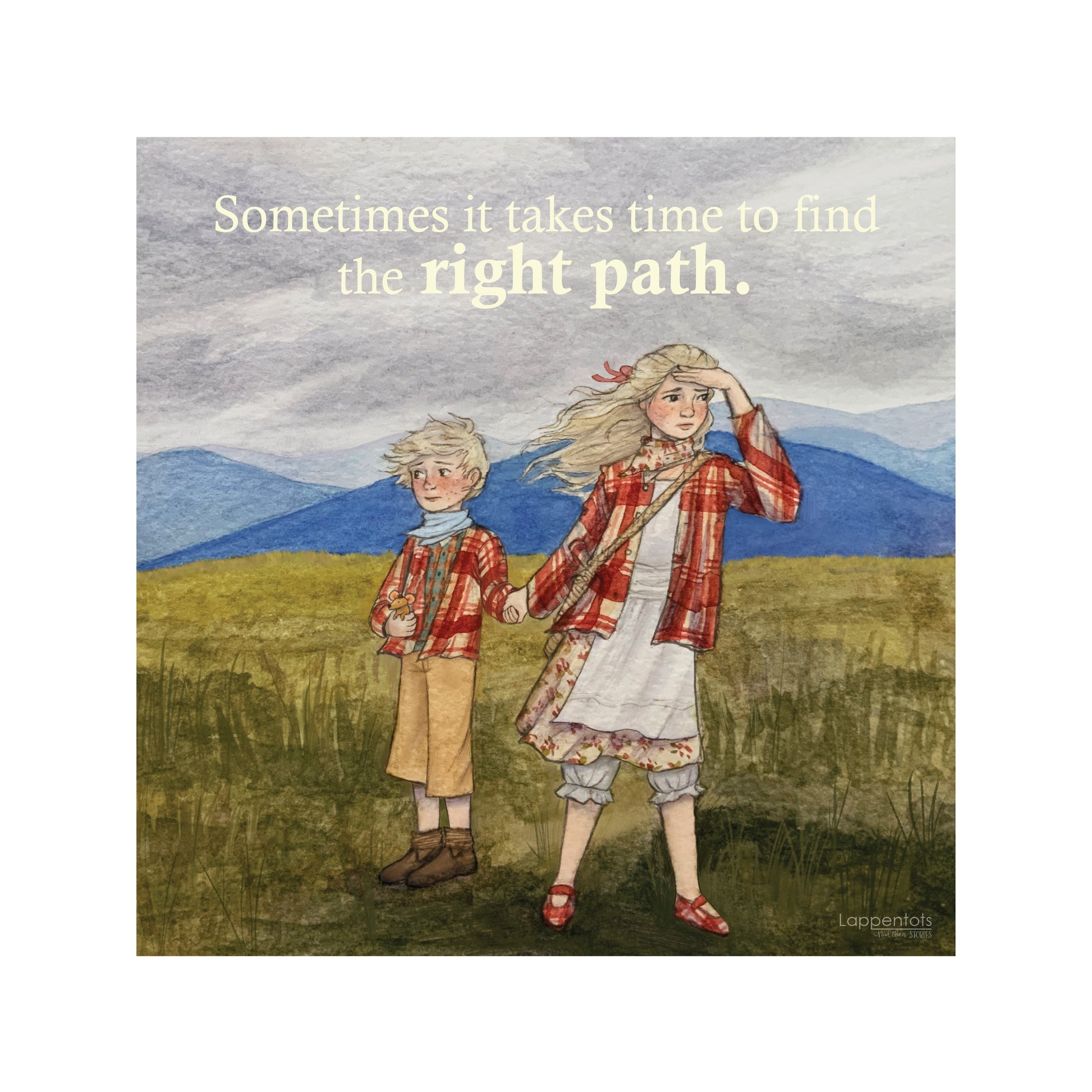 Elfa and Holger have a long way to go and are a long way from home. Just keep looking and you will find the right path for you. We love the rich colors and Holger's little mouse, this is a painting that will always be intriguing.
